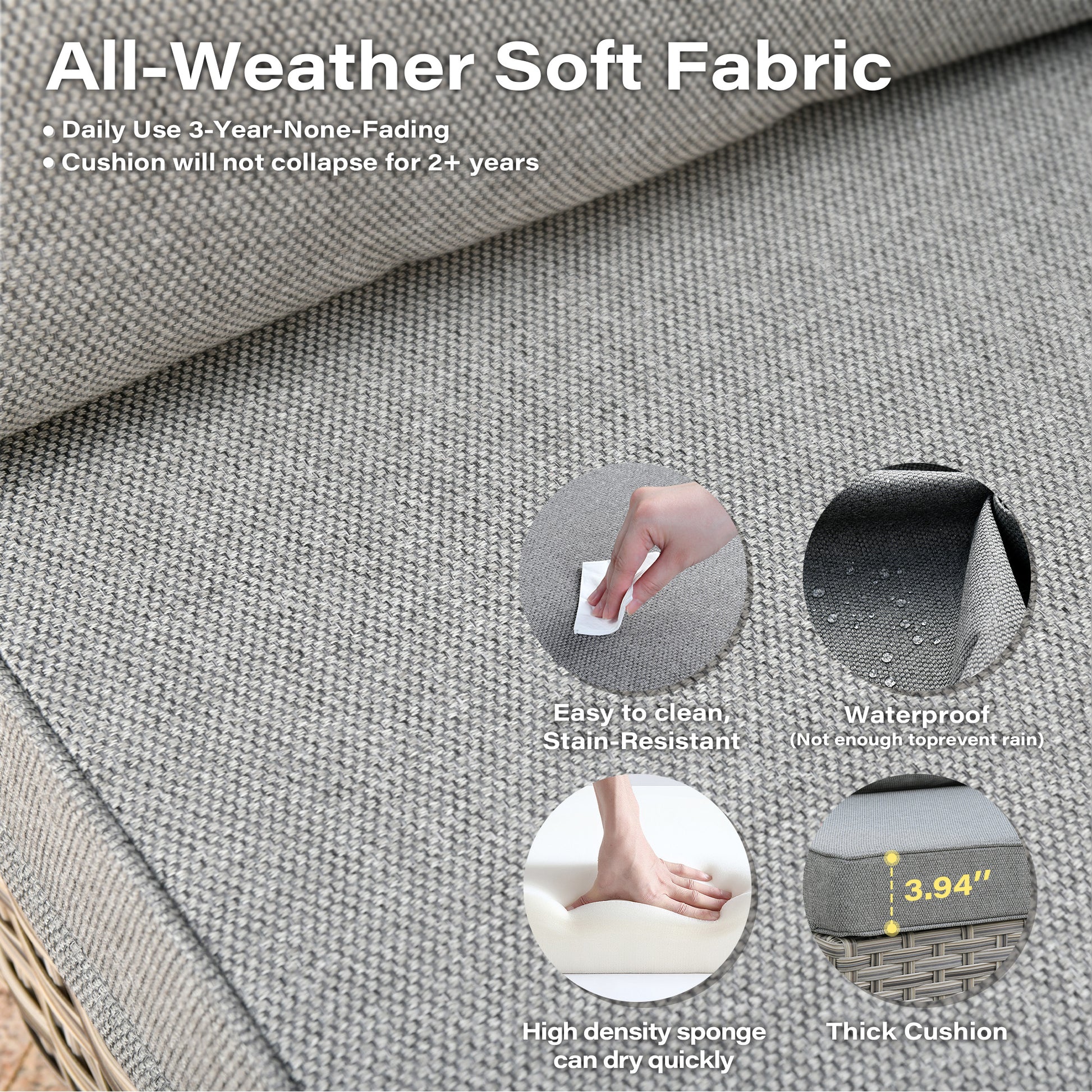 All-Weather wicker Construction: Builting with handwoven, all-weather wicker over a powder-coated steel frame, this all-weather wicker furniture set withstands sun, rain, and seasonal changes. The durable materials resist fading, cracking, and rust for year-round outdoor enjoyment. Patio sectional just occasional wiping to keep your outdoor furniture looking its best season after season.